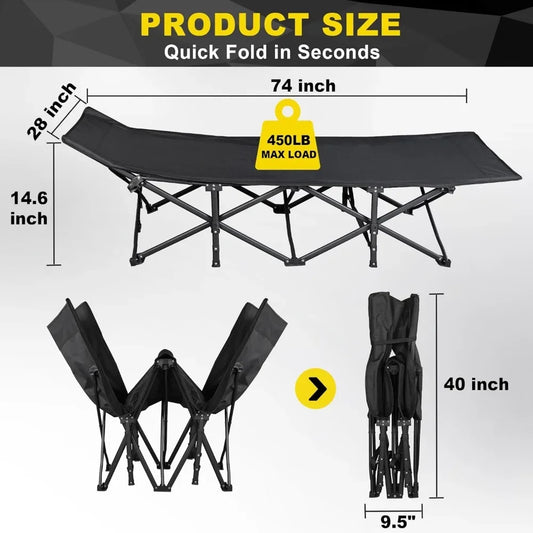Folding Camping Cot for Adults 450LBS(Max Load) Lightweight Outdoor Bed with Carry Bag for Nap Beach Vacation Hiking