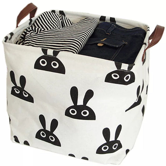 LuanQI 1Pc 33X35CM Desktop Storage Box Sundries Underwear Toy Laundry Storage Basket Black White Cartoon Office Stationery Bag