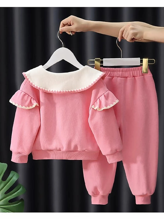 Cute Baby Girls Clothes Sets Casual Peter Pan Collar Kids Pullover Coats Tops+Pants 2Pcs Spring Autumn Children Clothing Suit
