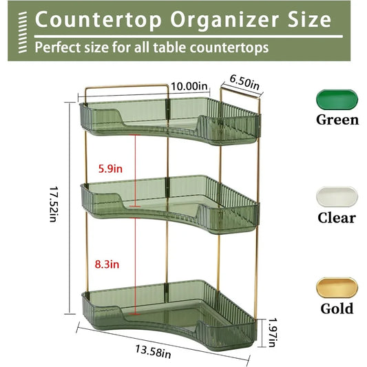 3-Tier Corner Bathroom Counter Organizer, Countertop Perfume Tray and Vanity Organizer, Makeup Cosmetic Storage