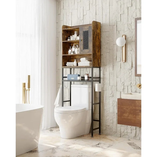 Over The Toilet Storage Cabinet 5-Tier Freestanding Bathroom Organizer with Display Shelves