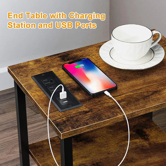 Nightstand Small Side Table Living Room with USB Ports and Outlets for Bedroom