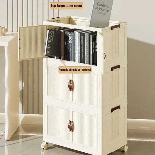 Removable Stackable Folding Storage Box with Wheels Clothes Toys Sundries Storage Boxes for Living Room Bedroom Display Cabinet