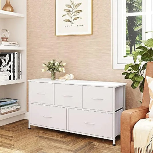 WLIVE Dresser for Bedroom with 5 Drawers, Wide Chest of Drawers, Fabric Dresser, Storage Organization Unit with Fabric