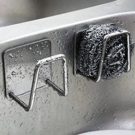 5/1PCS Kitchen Sponges Holder Rack Stainless Steel Adhesive Sink Sponges Drying Rack Wall Storage Holder Kitchen Organizer Hook